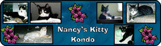 Hello... my name is Matthew and I am a member of my mom's "Kitty Kondo," and I like to talk a lot. I am the speaker of the house of this kitty kondo family, and I will write for my mom on this page, because this is her page. As well as her loving and caring for us, she loves all cats, computers and ceramic buildings. One of her hobbies is painting her ceramic houses for her Christmas village. So, between taking care of me, and my brothers and sisters, and doing stuff on her computer, she likes to do her ceramic painting too. Another one of the favorite things in her life is keeping in touch with our cousins, the seven cats, the one dog, their mom and the grandchildren, Ray and Kathryn.